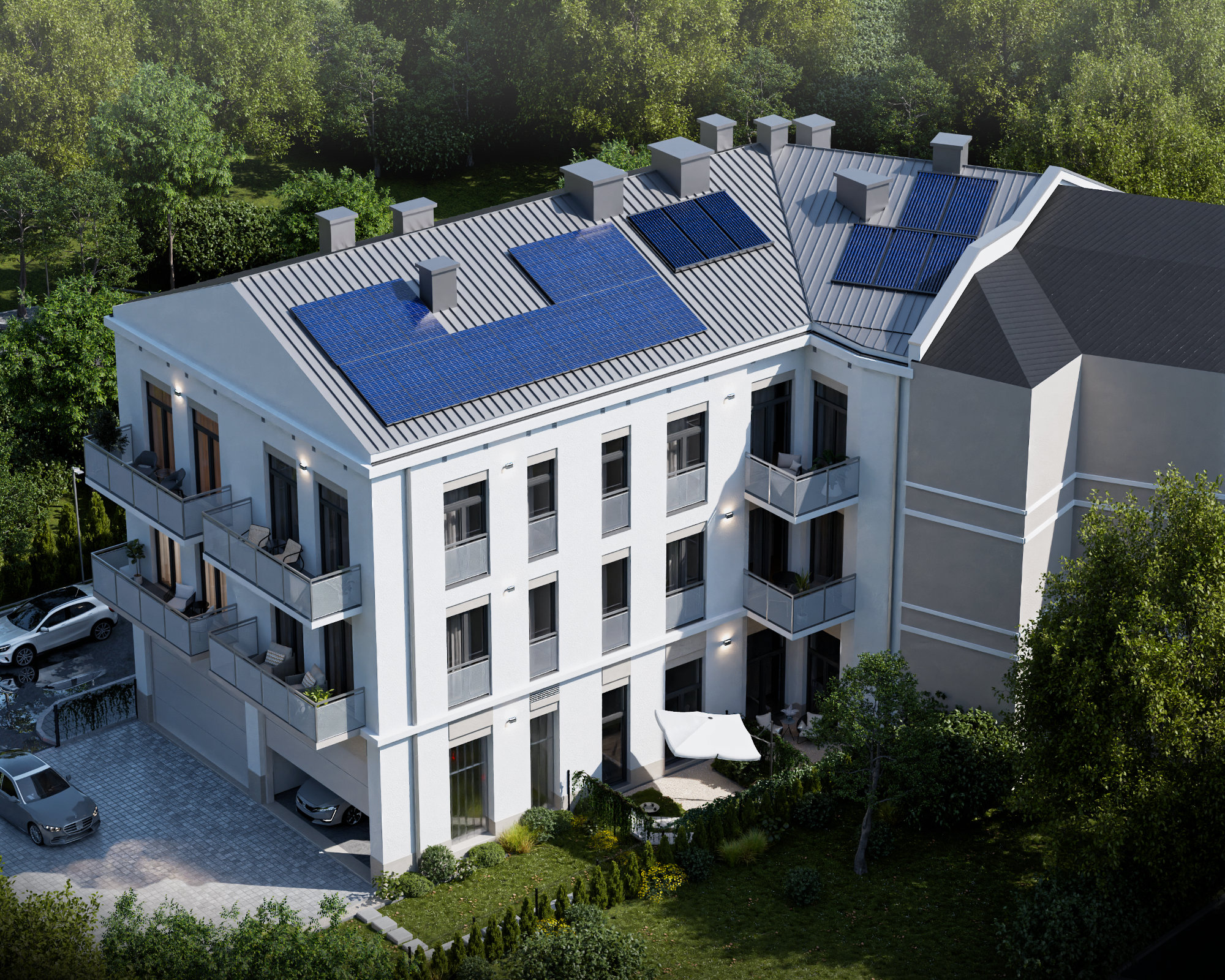 Wytworne części wspólne wykończone naturalnym kamieniem, nastrojowe oświetlenie, stylowe żyrandole – każdy detal tej przestrzeni podkreśla jej prestiżowy charakter. Nowoczesna winda, wózkownia, rowerownia i system monitoringu podnoszą komfort codziennego życia. A możliwość sterowania mieszkaniem z poziomu aplikacji? To luksus, który od teraz masz na co dzień.