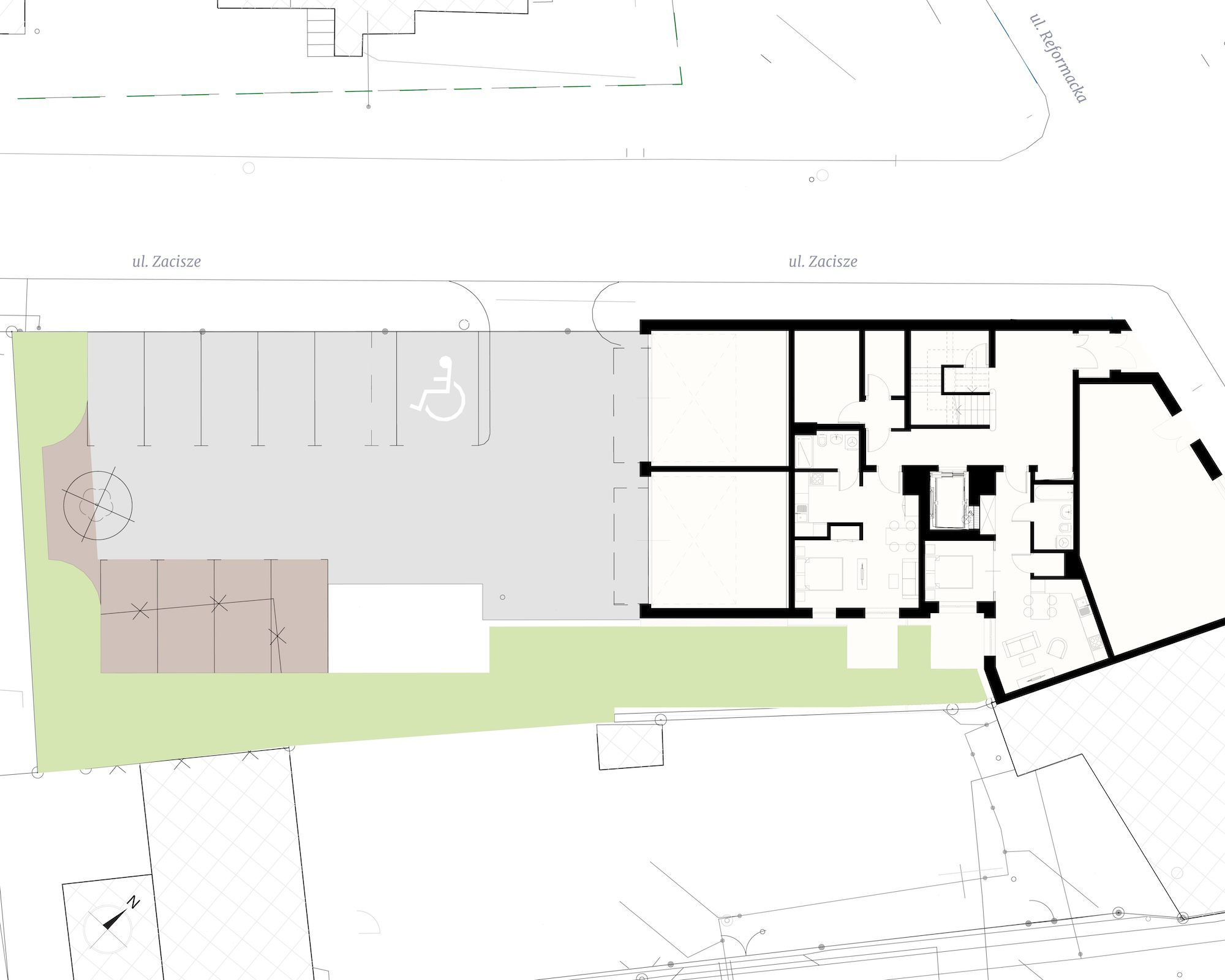 W centrum miasta miejsce parkingowe to luksus – w Kamienicy Reformacka staje się on standardem. Do dyspozycji masz zamknięty, monitorowany parking z wygodnymi miejscami postojowymi oraz cztery prywatne stanowiska w garażu. Możesz zapomnieć o nerwowym szukaniu przestrzeni dla samochodu – wracasz do domu i miejsce czeka na Ciebie. Bezpiecznie, komfortowo, na wyłączność.